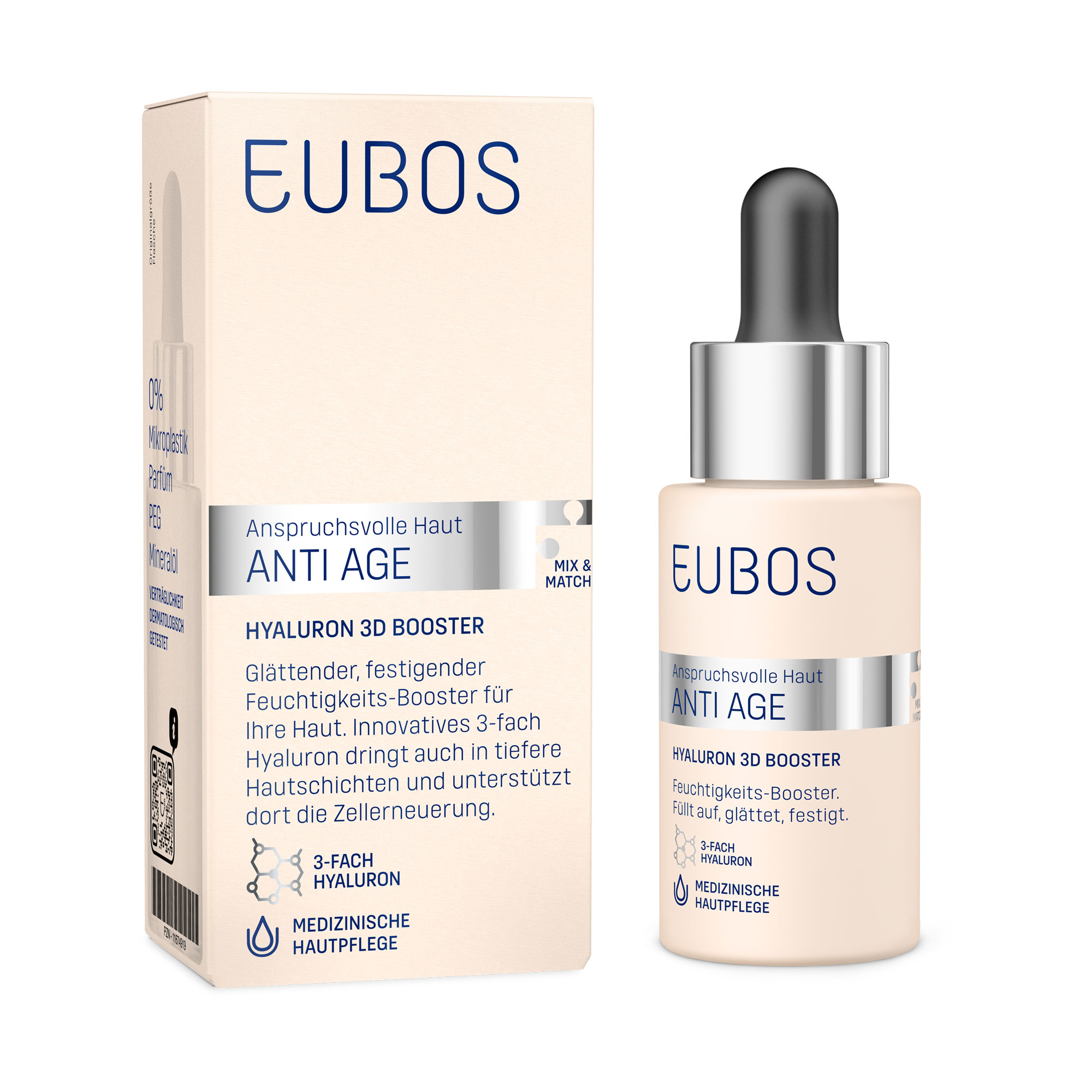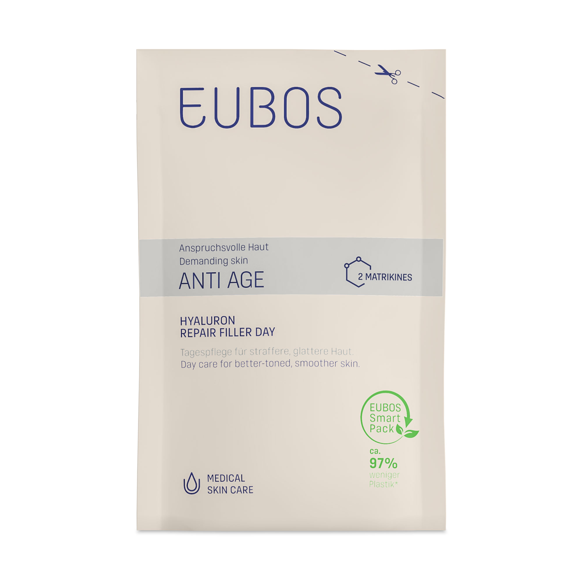 Anspruchsvolle Haut braucht ein Spezialteam, das genau weiß, was es tut: Glätten, reparieren und stärken ist seine Aufgabe. In der EUBOS ANTI AGE-Serie sorgt es für langanhaltende Feuchtigkeit, es schützt vor Umwelteinflüssen, mindert Falten, fördert die Collagenbildung, repariert Schäden und verzögert die Zellalterung. So wird die Haut von innen heraus gefestigt und erscheint frischer und jünger.